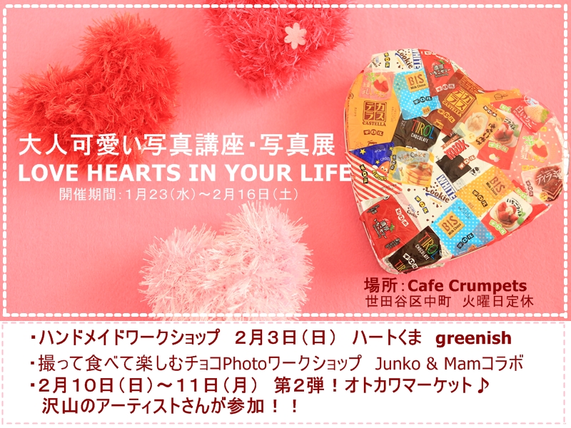 1月23日(水曜日)~2月16日(土)までCafe Crumpetsさんで開催します。