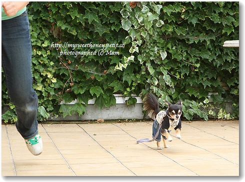 愛犬が走ってくる様子を交替で楽しく撮影しました。