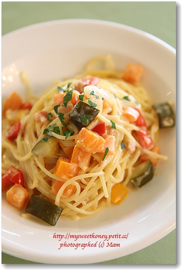 クリームパスタ。そしてプリン♪