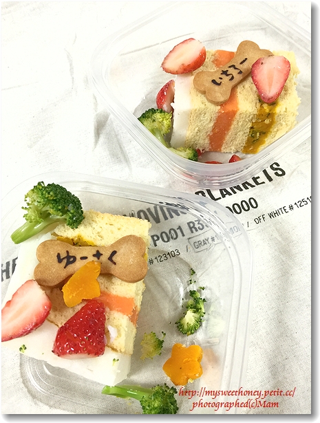 ワンコケーキは、駒沢のドッグカフェIZM(イズム)さんにお願いしました。