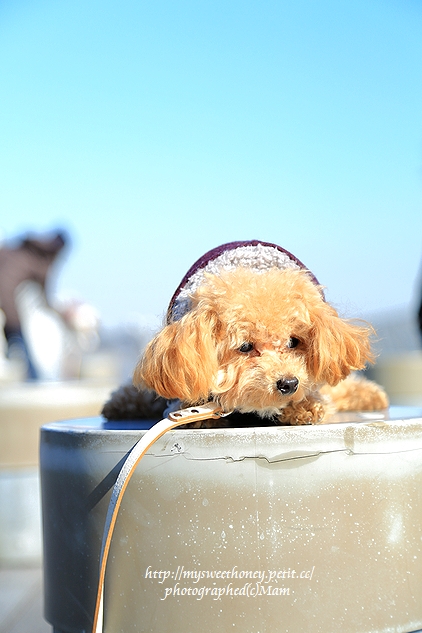 途中で寒くなると自分えバッグに入るブランちゃん♪