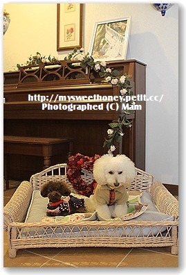 ロニーくん・ゆきちゃんは、器用にベッドのフチに前足で立ってくれました。