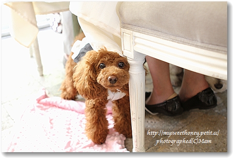テーブルクロスの下から、コンニチハ~!って感じで可愛い~!