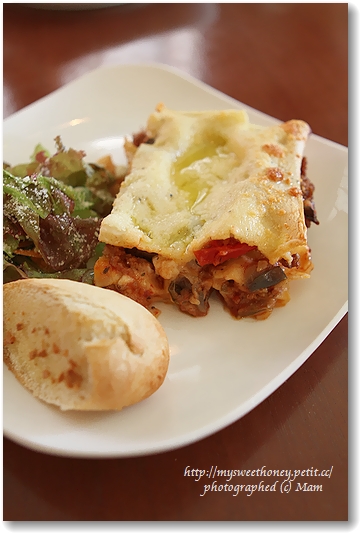 お野菜たっぷりなラザニア。パンも美味しかったです。