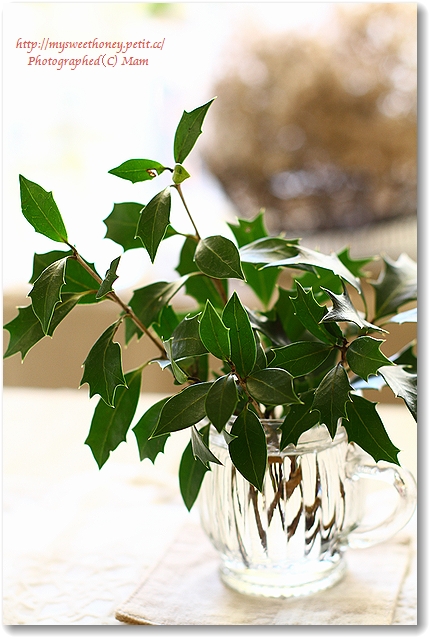 他のお花はダメになってしまったのですが、ヒイラギを水に挿しておいたら・・・