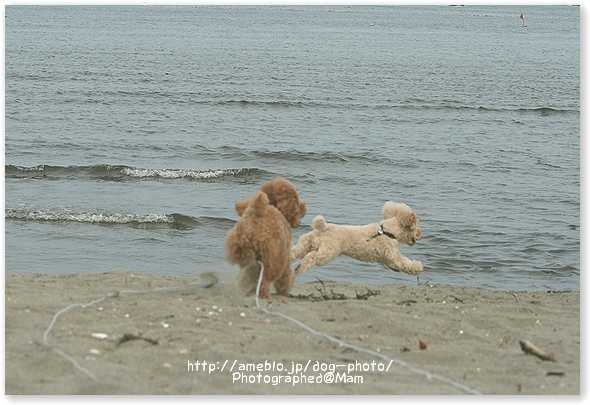 (笑)波打ち際は、いっちゃんよりゆちゃの方が得意としていて制止しなければ海に入って行きます。