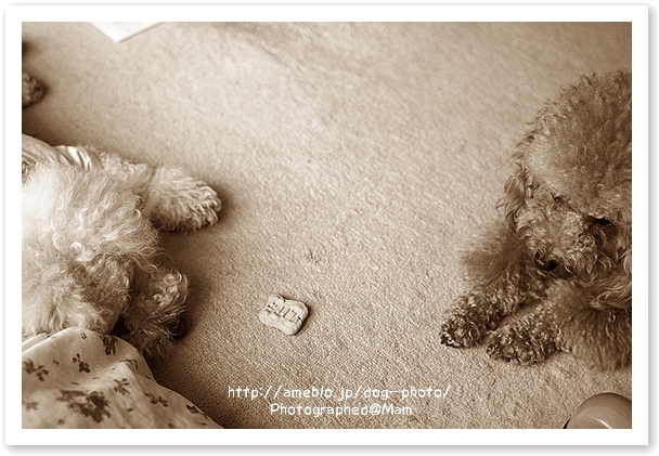 いっちゃんも、さっさと食べてしまえばいいのに、クッキーが余り好きじゃないのかも・・・。
