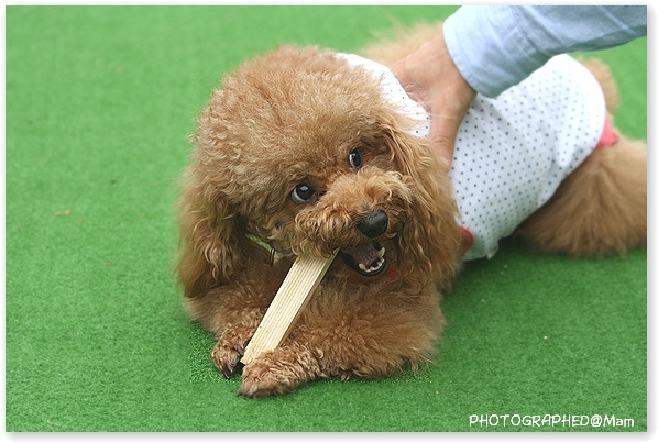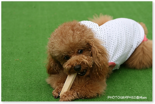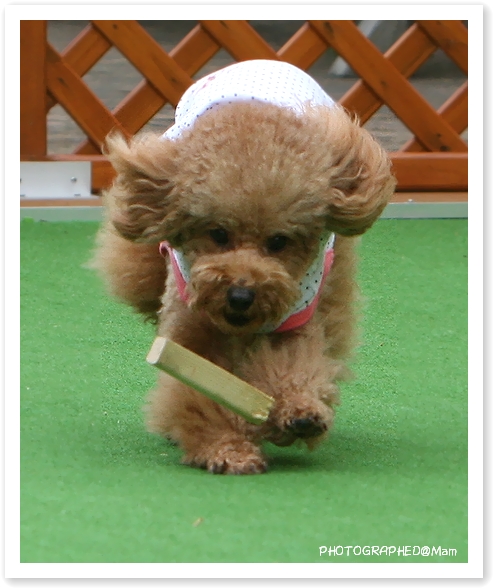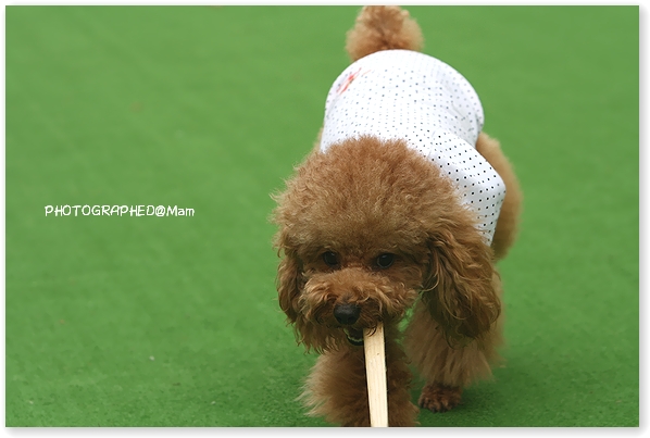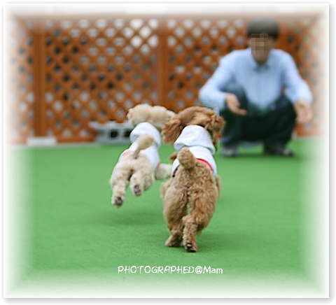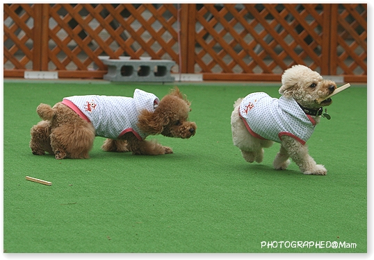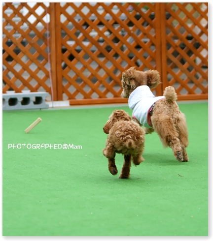 先にかけつけて棒を噛んで逃げ回る。(*≧m≦*)ププッ