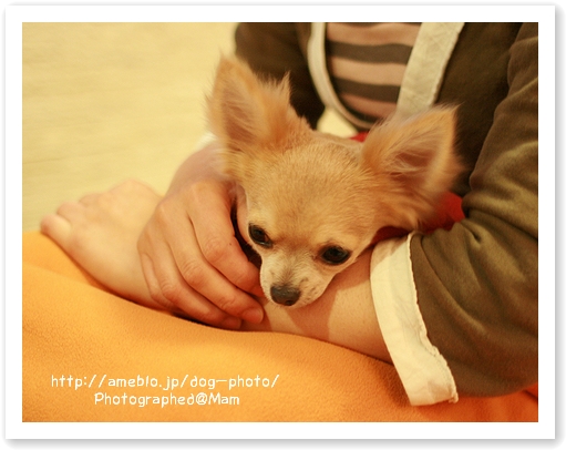 こうくんもママさんのお膝でブランケットに包まっていました。