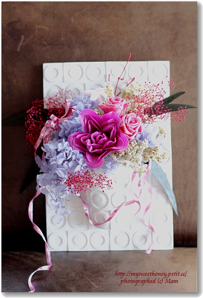 香りがするソープのお花とプリザーブドフラワーを合わせて作るタペストリー。