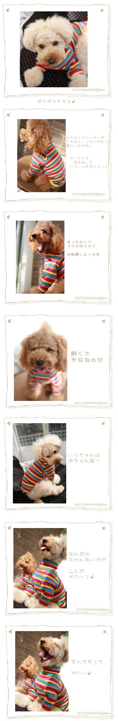 いっちゃんとゆーさく君のおシリ・・・と~ってもLovelyですね(♡▽♡)それに七色のお洋服、相当かわいいです(♡▽♡)