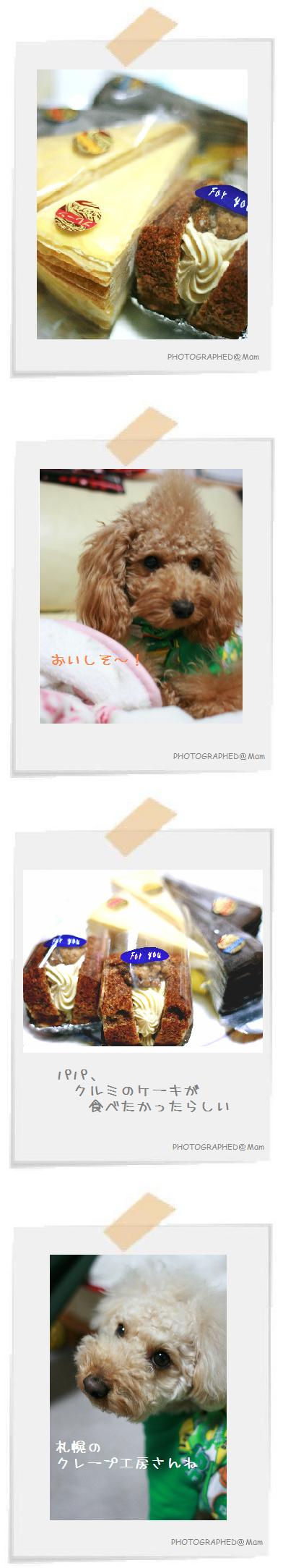 ケーキ食べましたが・・・・・解凍後クリームが柔らかくならずクレープも乾いている感じで